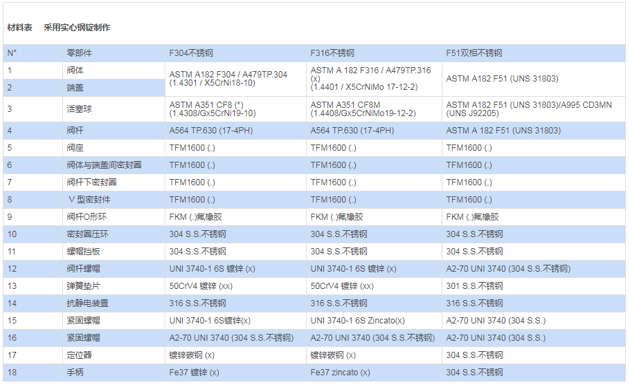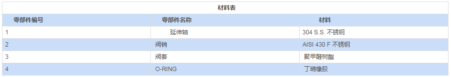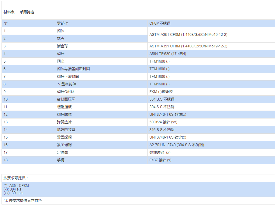 采用材料(用于閥體/活塞球/閥桿)與標(biāo)準(zhǔn)配置不同的參數(shù)要求,請(qǐng)與我們的銷售部門聯(lián)系