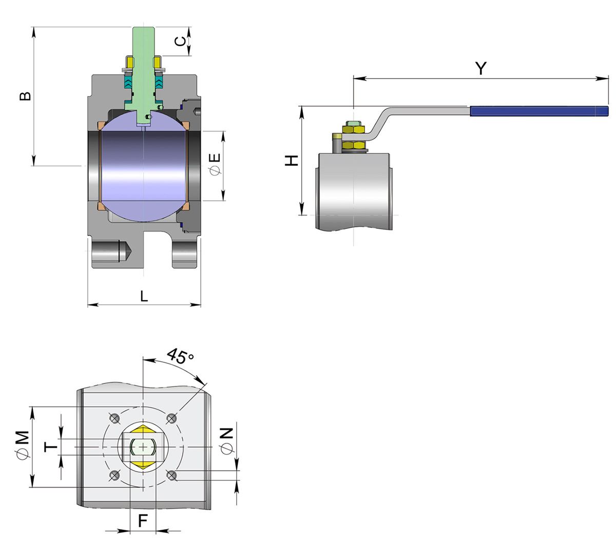 與執(zhí)行器連接孔符合ISO5211標(biāo)準(zhǔn)